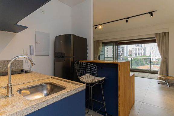 Apto novo, mobiliado de 44m2 (2 ar condicionado), lazer completo c/ vaga de garagem. 11o andar vista para o Ginásio e Parque do Ibirapuera (13 minutos caminhando). Meia quadra da Av Brigadeiro Luiz Antônio. Próximo av Brasil, Av Paulista e 9 de Julho. Supermercado, feira livre, farmácias, bancos, tudo perto de Você.